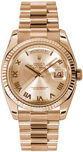 – Solid 18k Everose Gold Case & President Bracelet