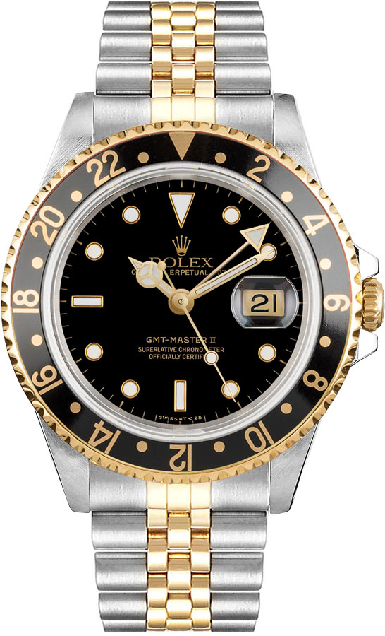 The Rolex GMT-Master II 16713LN is a beautiful timepiece that exudes luxury and style. This watch features a black dial, an 18k yellow gold bezel with a black aluminum bezel insert, a stainless steel case, and a two-tone jubilee bracelet. It’s powered by a self-winding automatic superlative chronometer-certified movement and has a date window under the cyclops lens at 3 o’clock. Whether you’re dressing up for a special occasion or just want to add a touch of elegance to your everyday look, this watch is sure to turn heads.