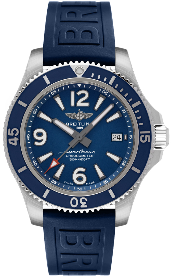 The Breitling Superocean Automatic 42mm Swiss-made Mens Diving Watch model A17366D81C1S2/149S is now on sale. Featuring a brushed with a polished stainless steel case with screw-down crown & case back and a 7 adjustable blue Diver Pro III rubber strap with stainless steel deployment buckle, this watch is an amazing deal. A bold blue dial is accentuated with luminescent hands & index hour markers, Arabic numerals 6, 9, & 12, and a date feature and sits beneath a cambered scratch-resistant sapphire crystal that is glare proofed and encompassed by a blue stainless steel unidirectional rotating bezel. This beautiful watch is driven by Breitling Caliber 17 and COSC Chronometer Certified Self-winding Automatic movement with a 38-hour power reserve.