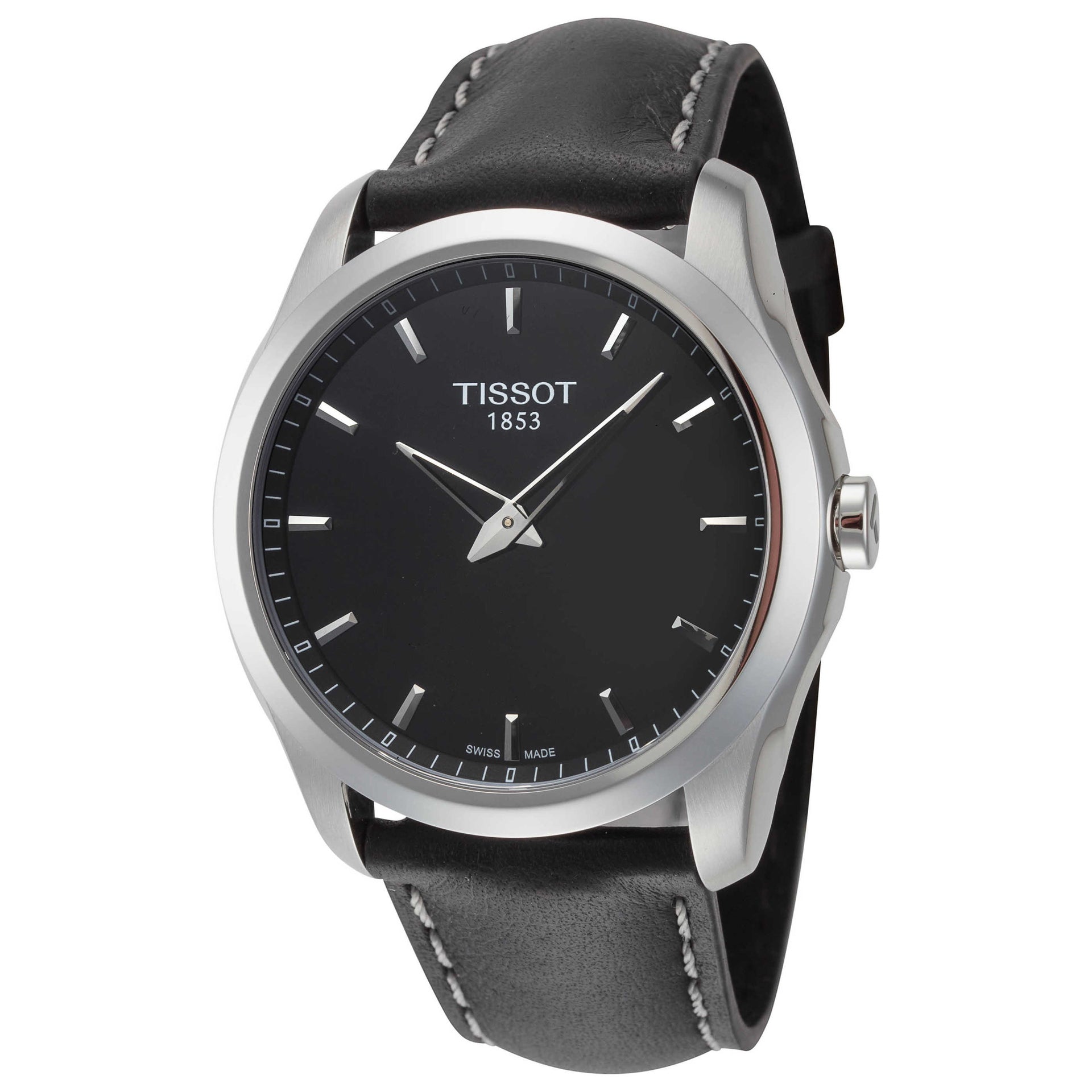 Experience the essence of refined masculinity with the Tissot Couturier Men’s watch, a product of Swiss precision and artistry. This Swiss-made quartz movement watch features a round 39mm stainless steel case and a pull and push crown, enveloped in a scratch-resistant sapphire crystal. Beneath the closed case back, discover the intricacies of its craftsmanship, safeguarded with a 100m water resistance. The sophisticated black dial is complemented by a matching black leather strap, seamlessly fastened with a pin buckle. It’s a true emblem of understated elegance, reflecting the ultimate in Tissot’s savoir-faire. T0354461605102